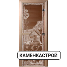 Дверь с рисунком Банька в лесу бронза прозрачная, коробка из лиственной породы дерева.
